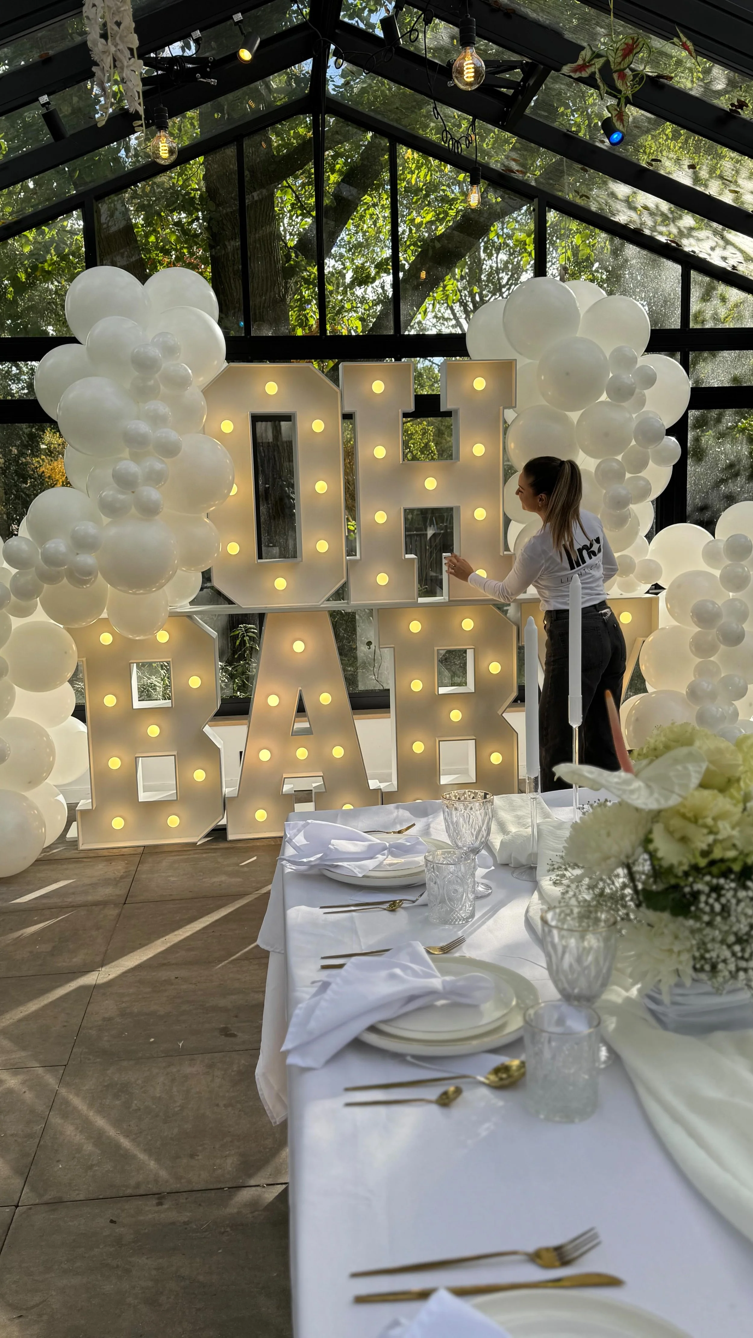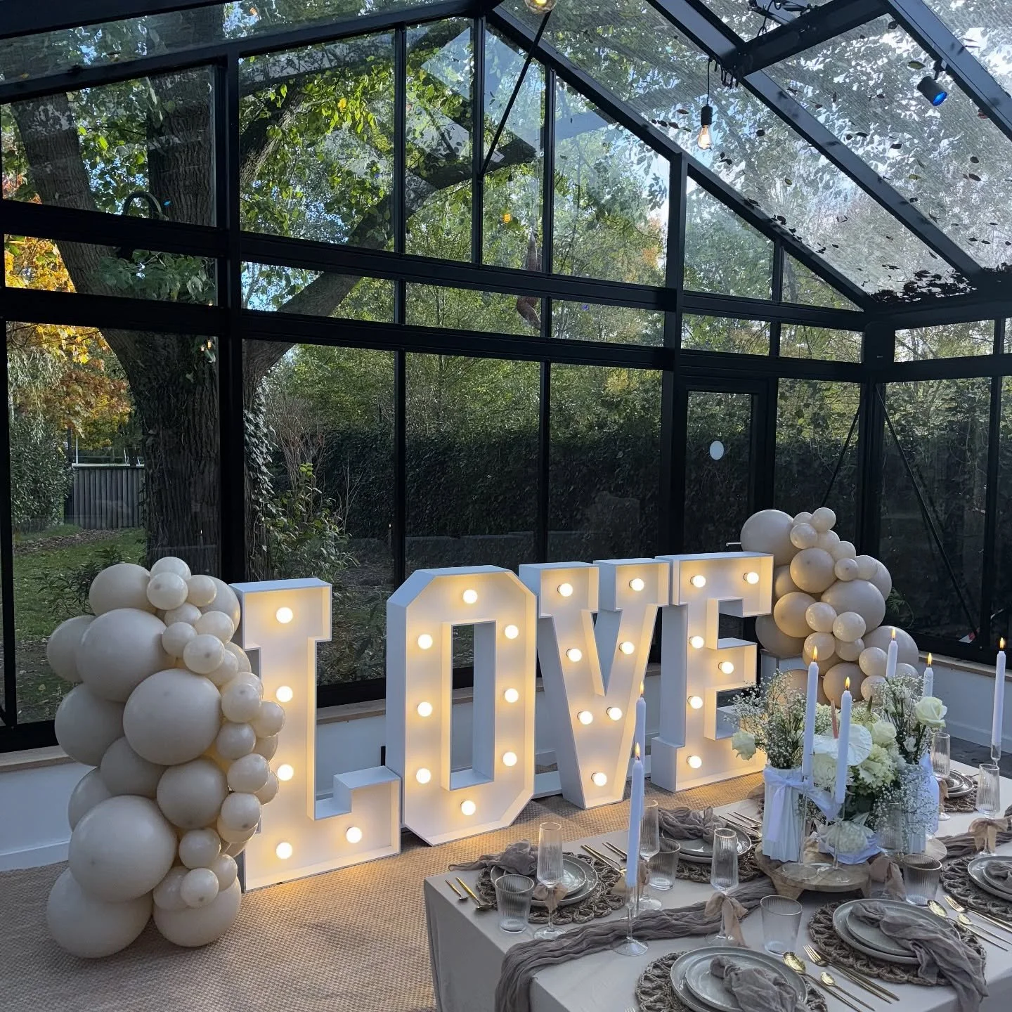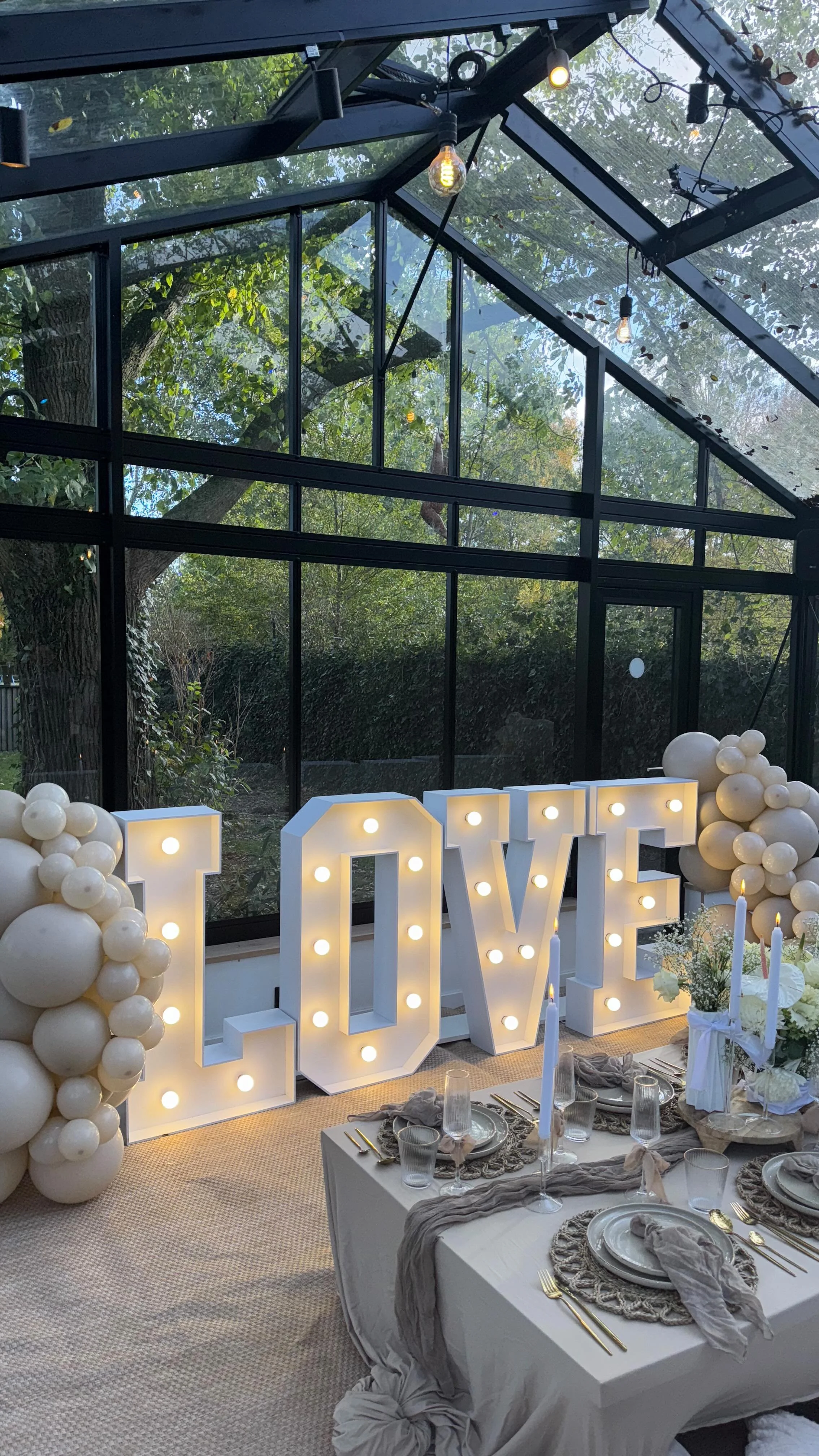 Laat jouw feest stralen met Lina LichtlettersCreΓ«er een sfeer van betovering en allure met onze prachtige lichtletters. Onze lichtletters voegen een vleugje magie toe aan elke setting.